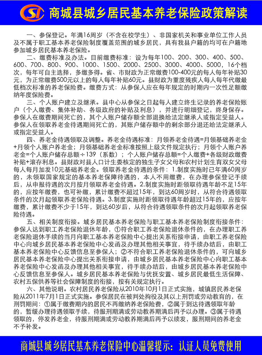 商城县城乡居民基本养老保险政策解读