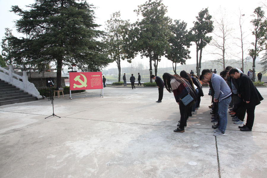 在革命烈士纪念碑前,党员代表向革命先烈们敬献花篮,瞻仰烈士纪念碑,重温入党誓词,并向烈士们鞠躬表示沉痛哀悼和崇高敬意。