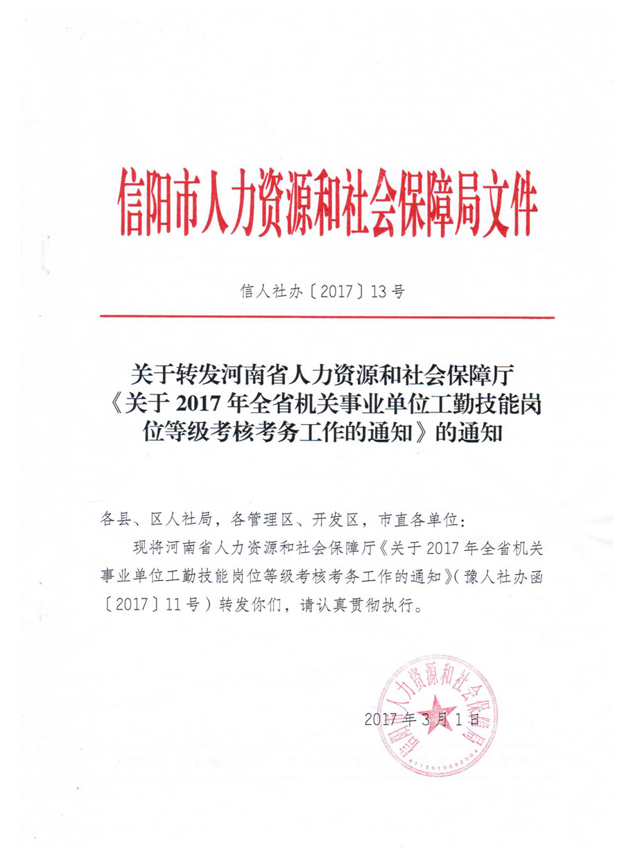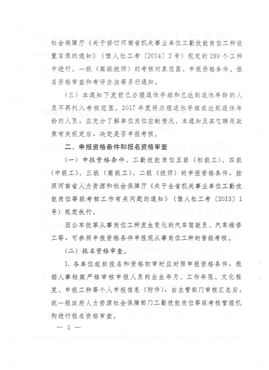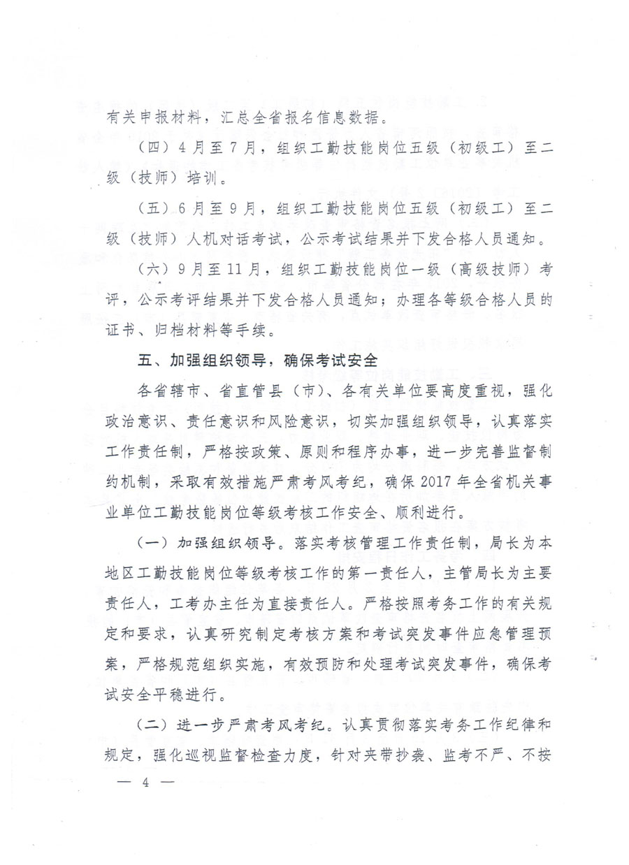 2017年全省机关事业单位工勤技能岗位等级考核考务工作的通知
