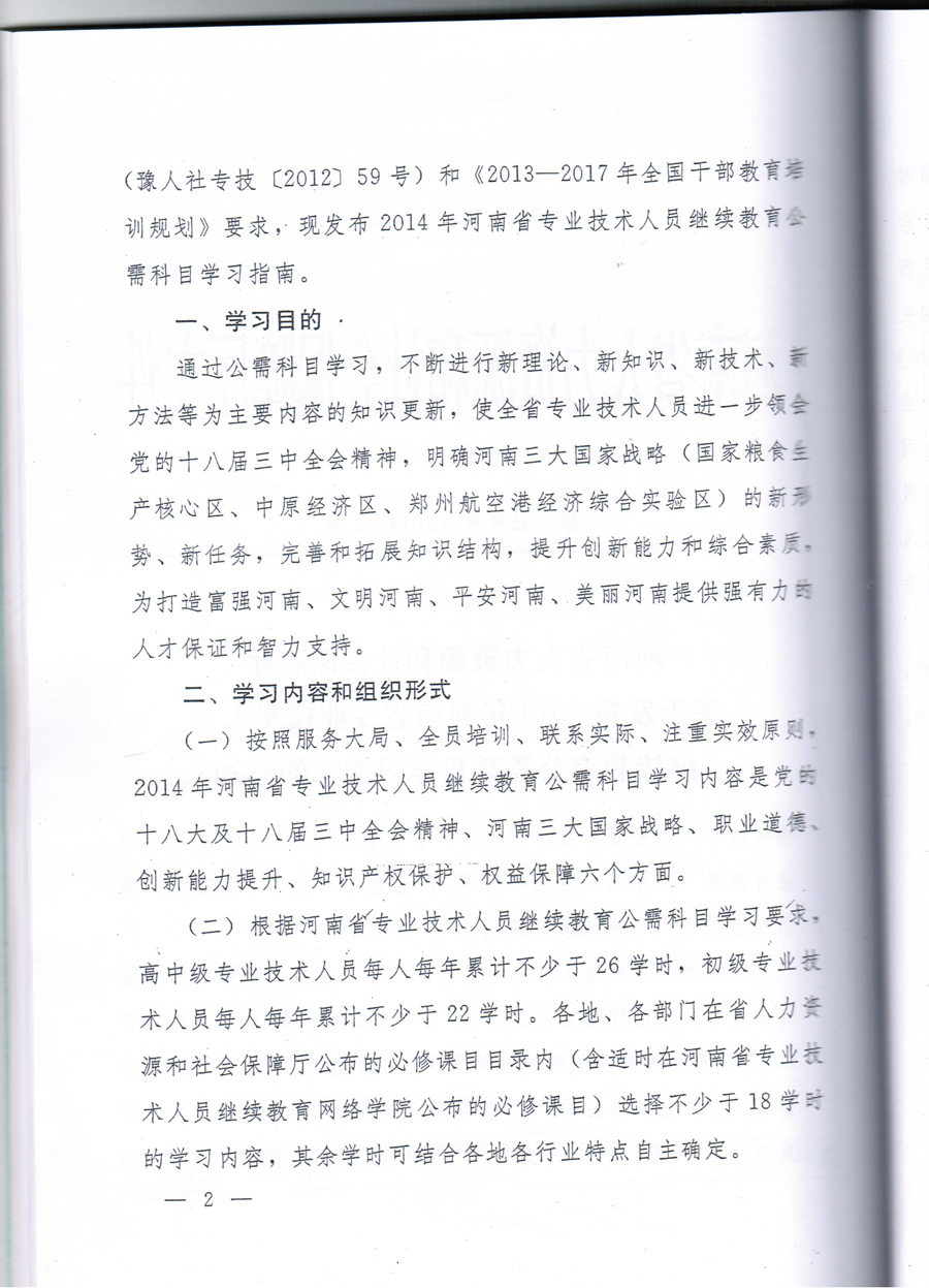 省人社厅关于发布2014年河南省专业技术人员继续教育公需科目学习指南的通知
