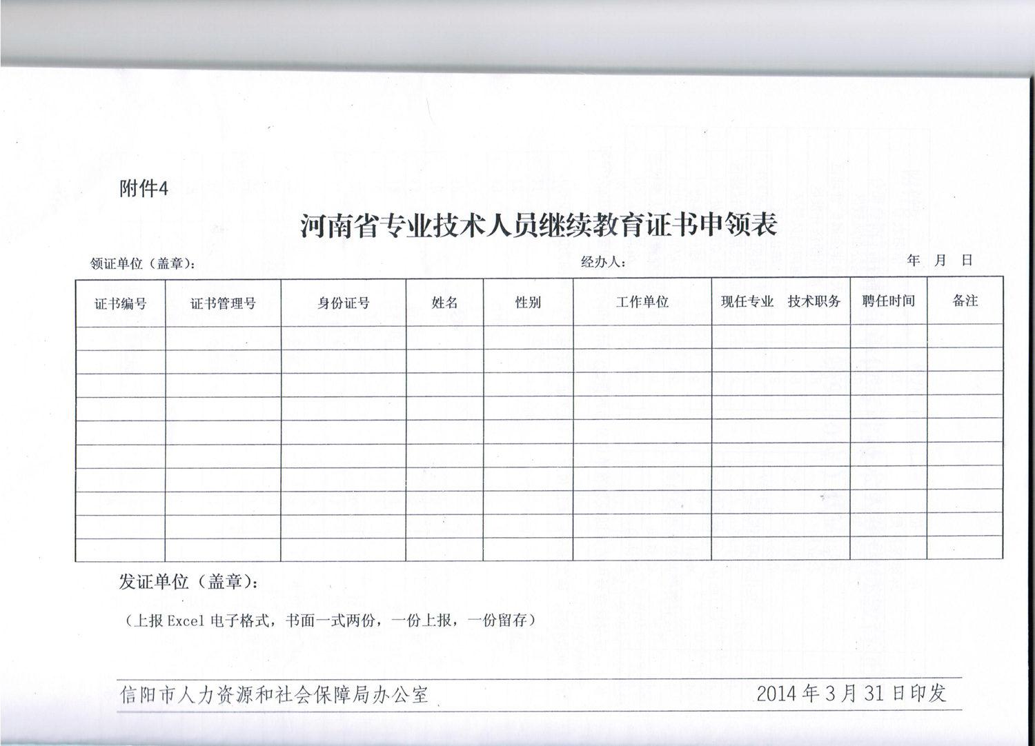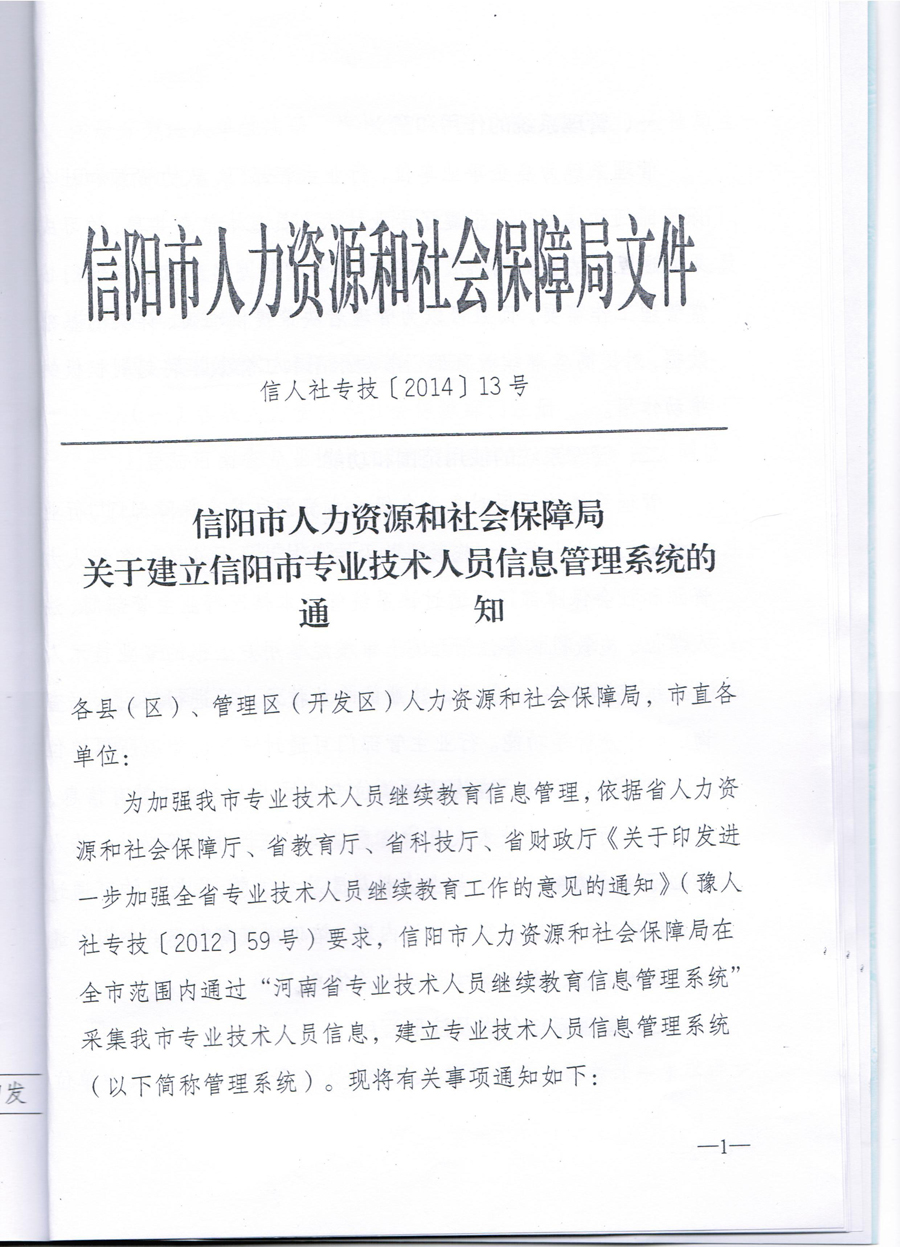 市人社局关于建立信阳市专业技术人员信息管理系统的通知