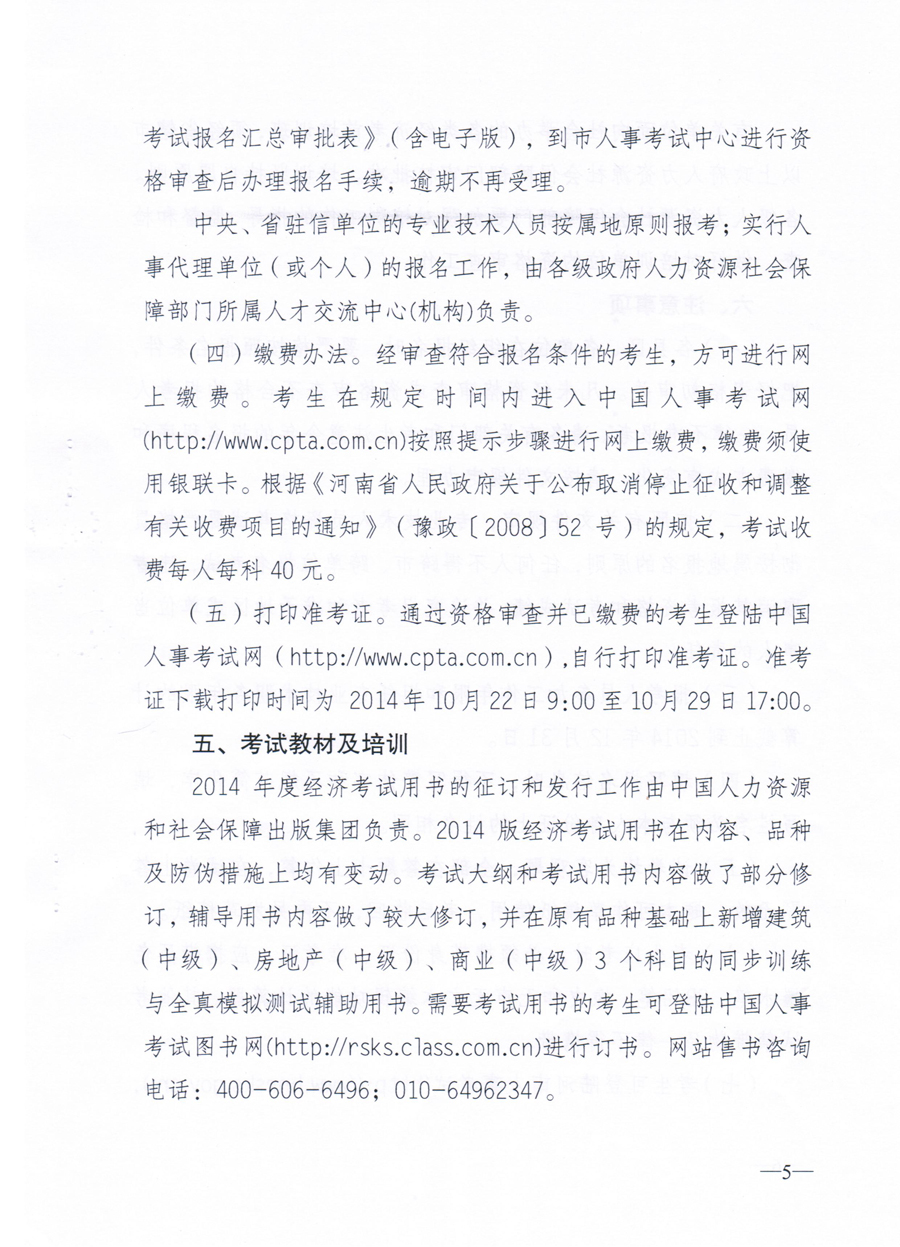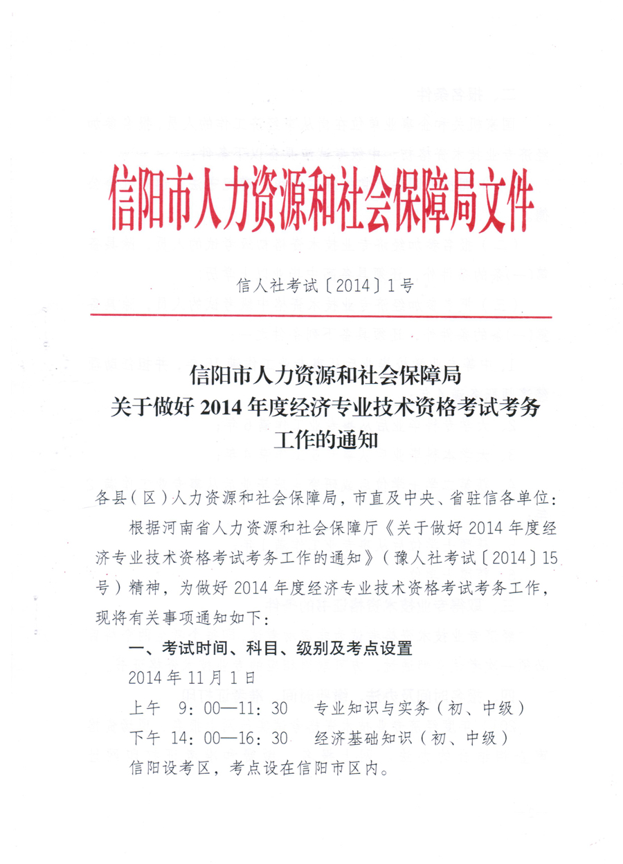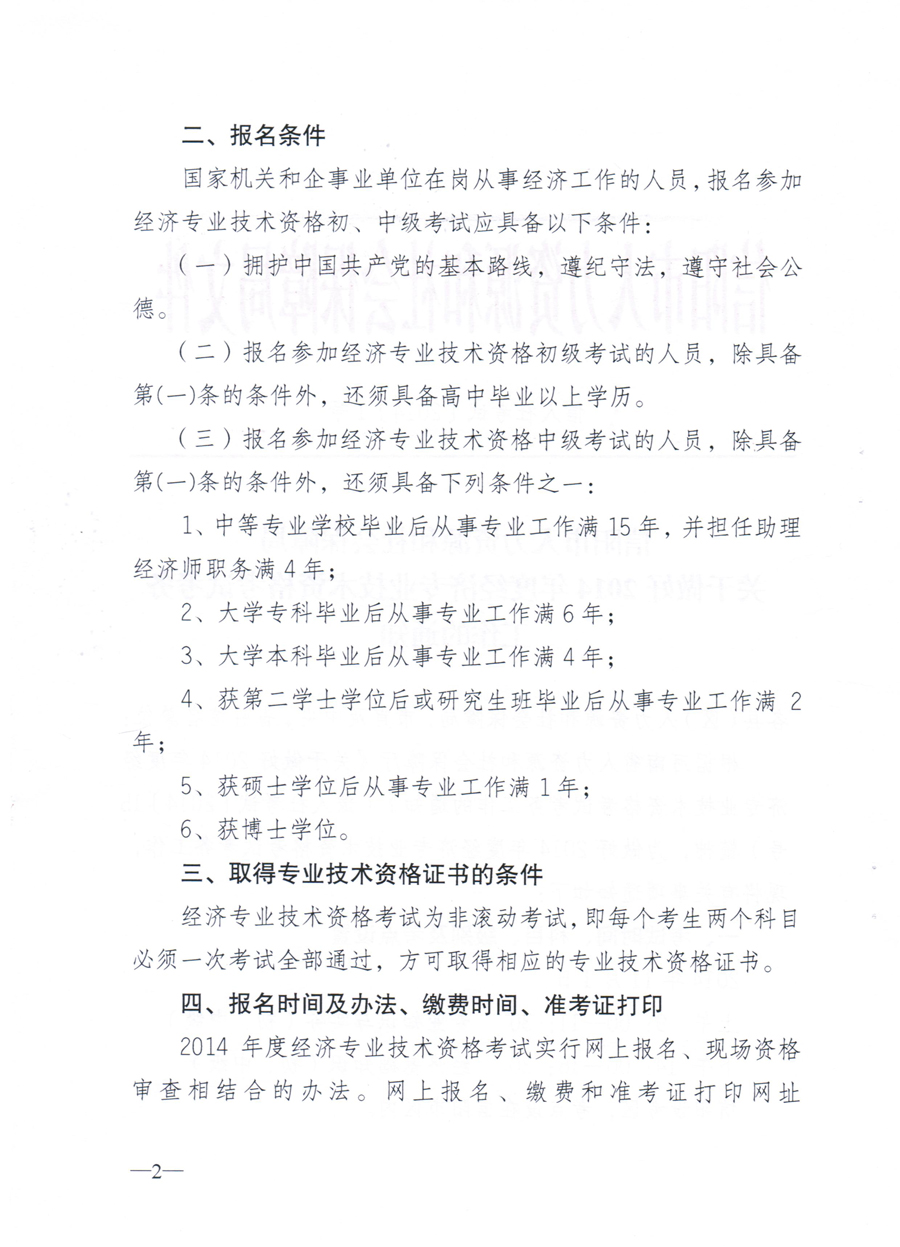 关于2014年度经济专业资格考试工作的通知