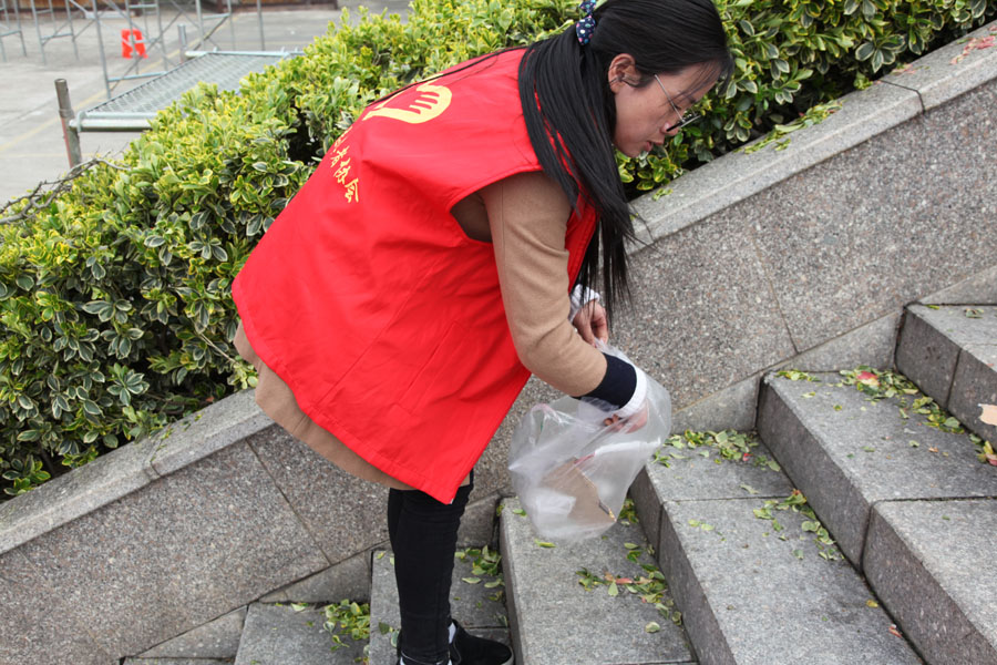 志愿者们身着统一服装,在景区门口,景点,都可以看到志愿者们忙碌的身影,他们向游客发放环保宣传资料和文明书签,热情的对游客进行线路指引,对乱扔垃圾、随地吐痰等少数不文明的行为进行劝导,将路边的垃圾捡拾到自备的垃圾袋。用自己的实际行动感染人,影响人,成为了景区另一道亮丽的风景线。