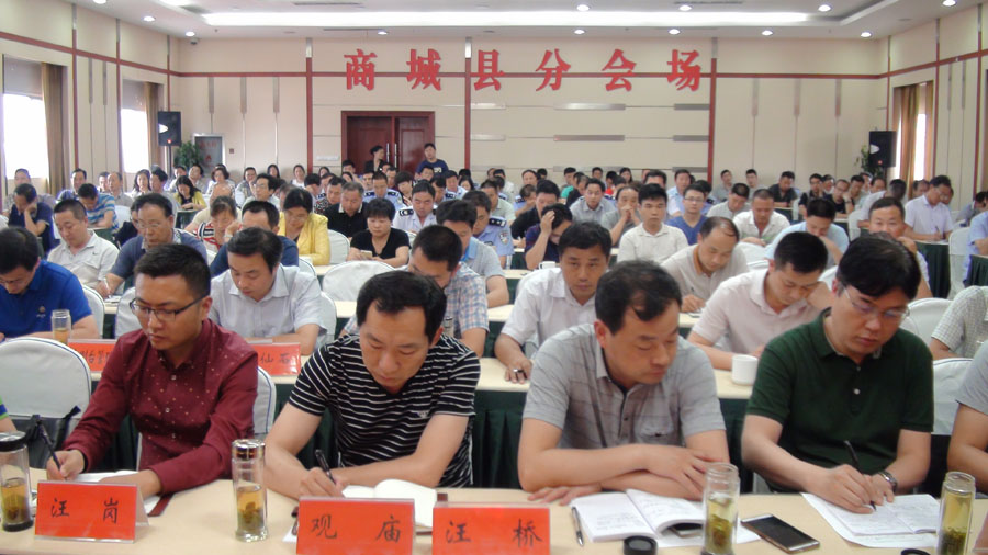 会议由县政府副县长程琳主持,他传达了省、市关于全民参保登记计划会议精神,宣读了《关于印发<商城县全民参保登记工作实施方案>的通知》;县人社局党组副书记曹忠厚讲解了全民参保登记工作主要内容和需要注意的有关事项;县公安局、县卫计委、赤城办事处、双椿铺镇作为领导小组成员单位代表分别作了表态发言。