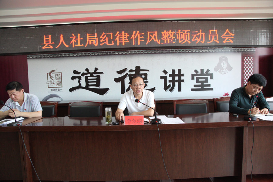 为认真贯彻落实县干部作风集中整治工作要求,深入推进“两学一做”学习教育常态化制度化,切实改进人社系统干部作风,9月8日下午,县人社局在局五楼大会议室召开纪律作风集中整治动员会。局班子成员,局机关各股室、局属各单位,全体党员干部参加了动员会。