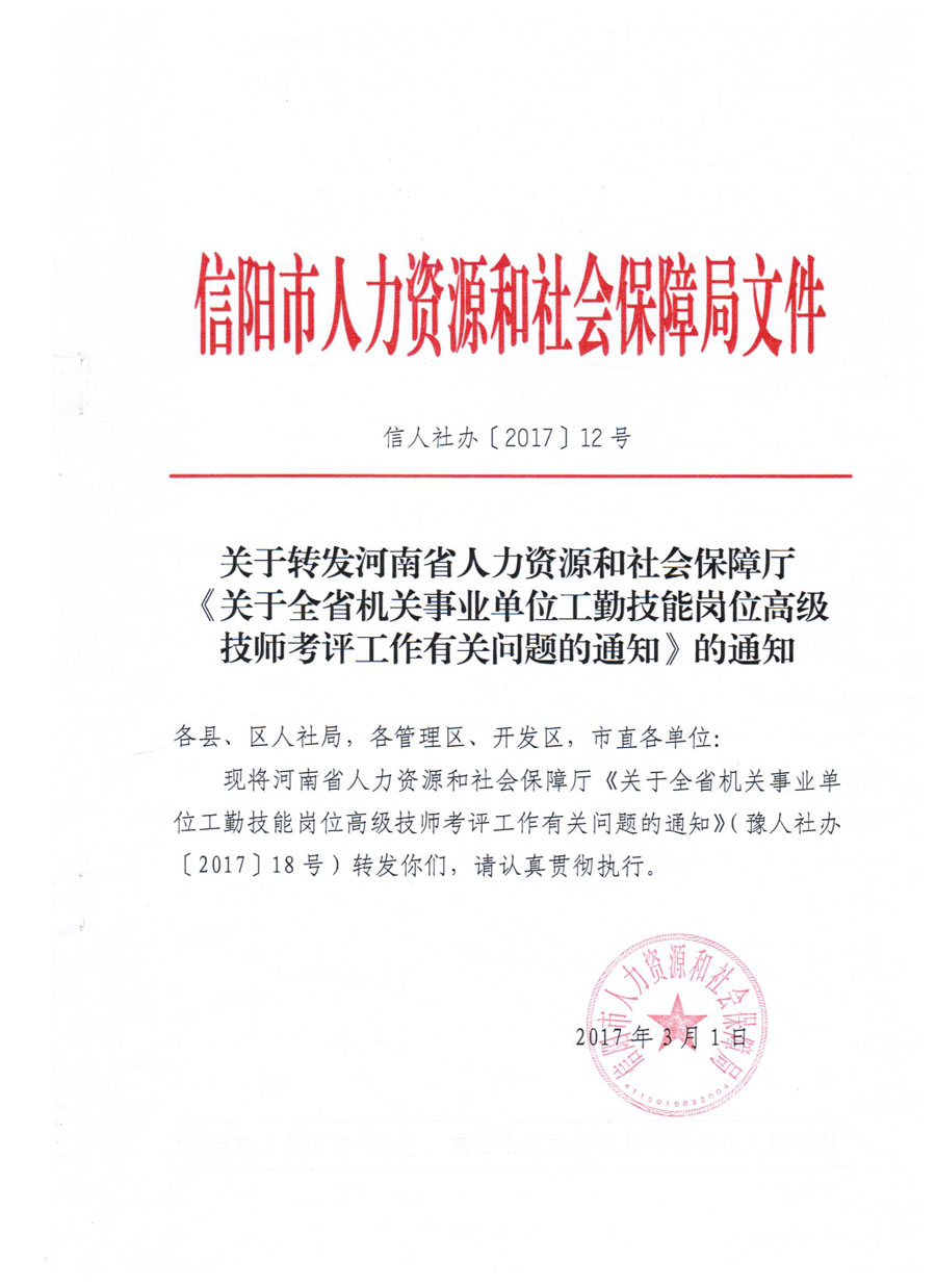全省机关事业单位工勤技能岗位高级技师考评工作有关问题的通知