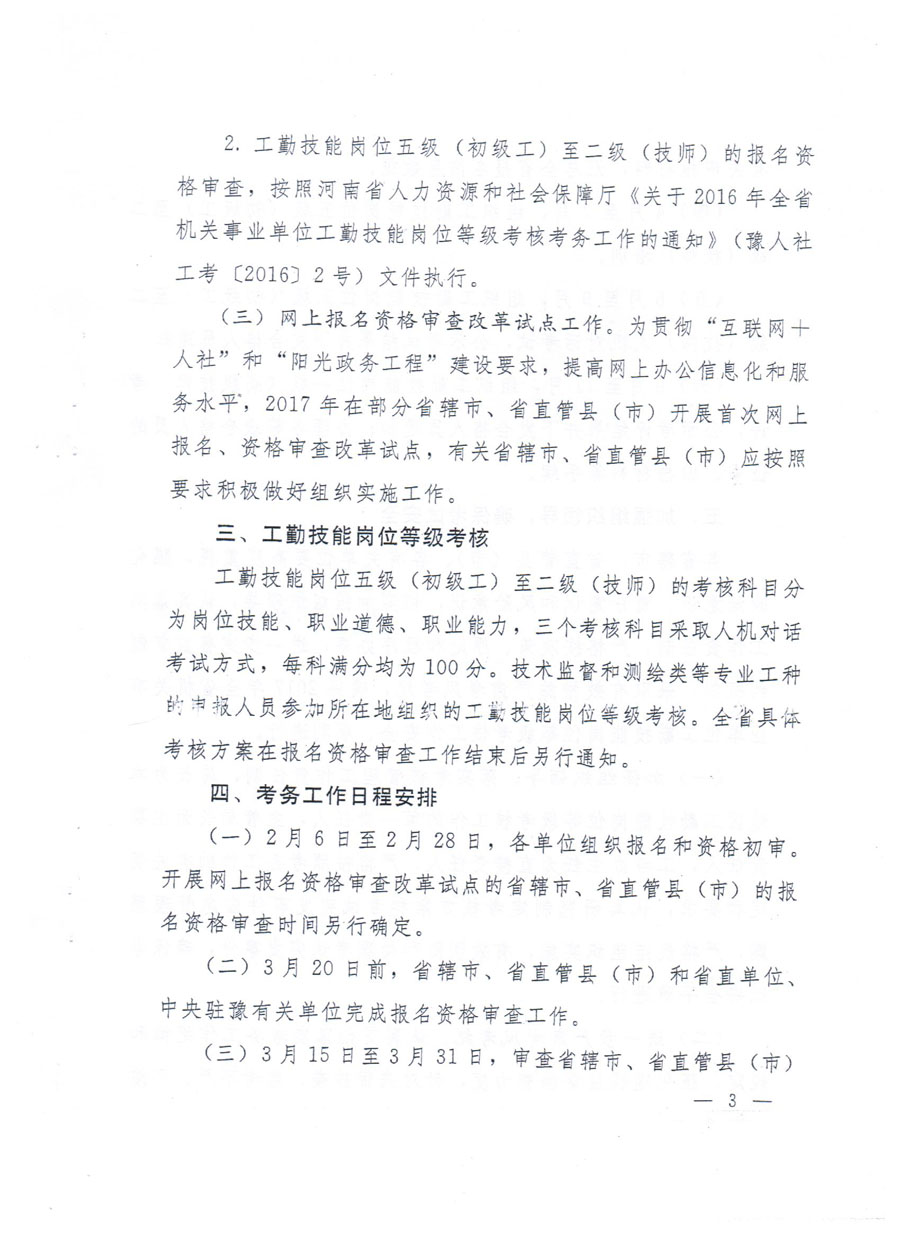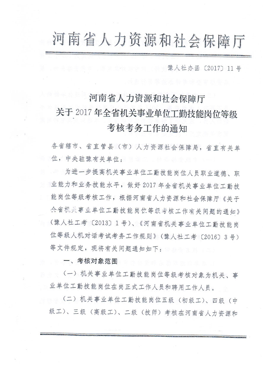 2017年全省机关事业单位工勤技能岗位等级考核考务工作的通知