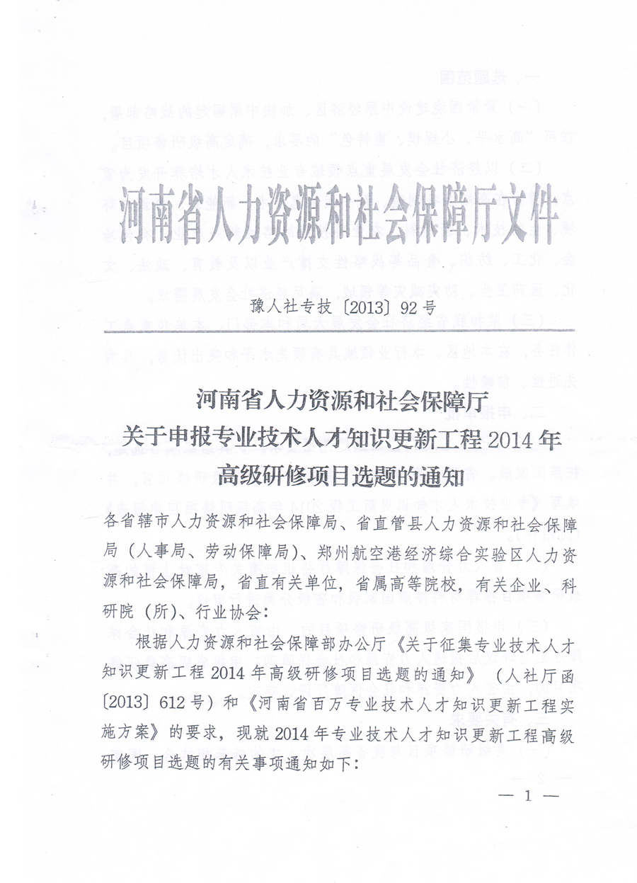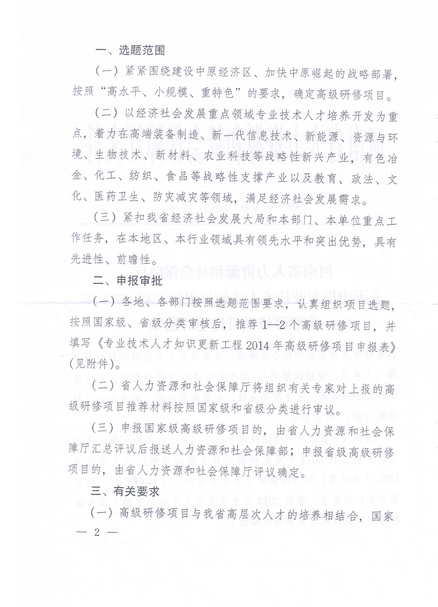 关于申报专业技术人才支持人才知识更新工程2014年高级研修项目选题的通知