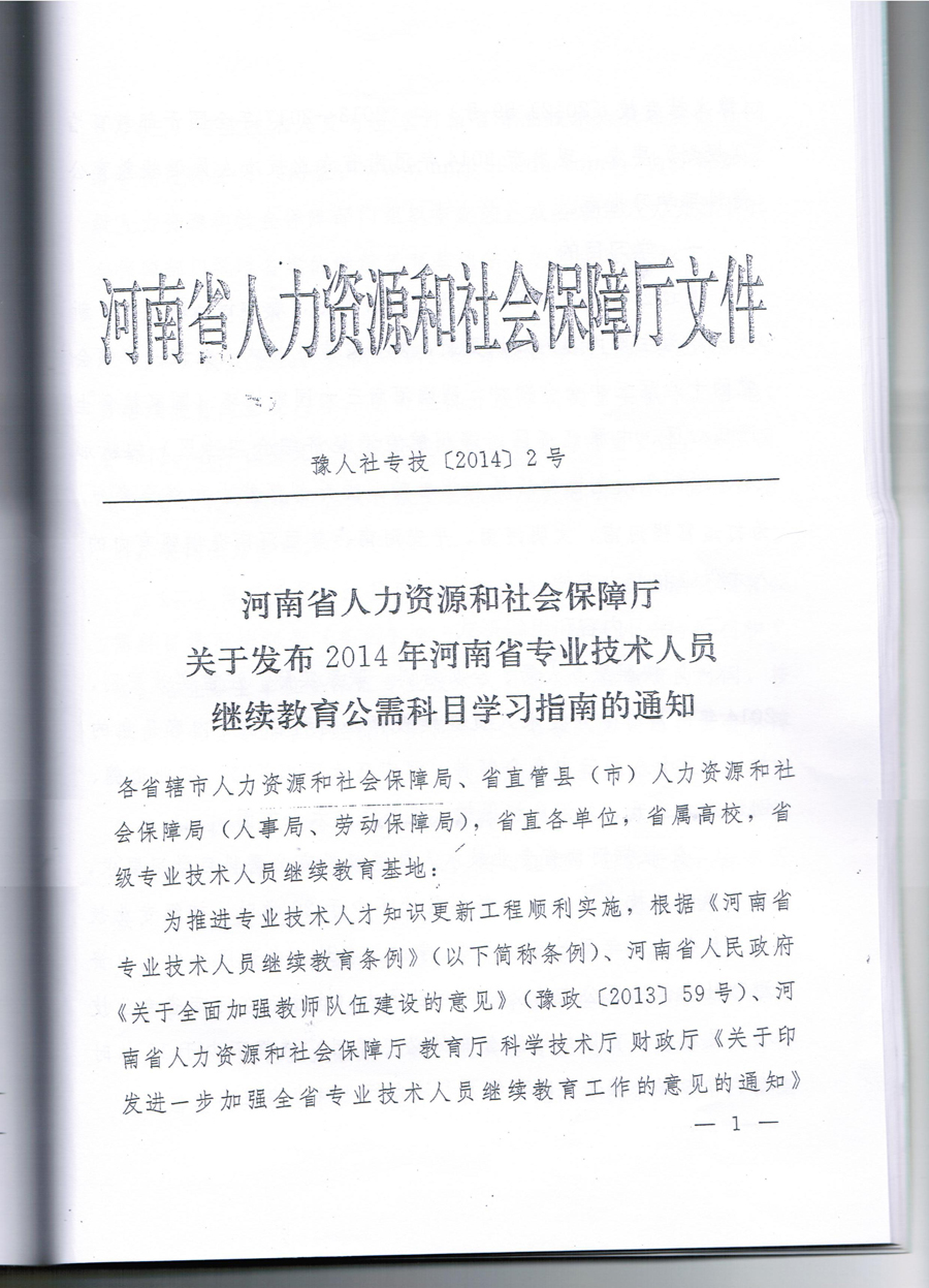 省人社厅关于发布2014年河南省专业技术人员继续教育公需科目学习指南的通知