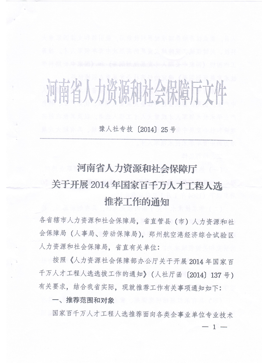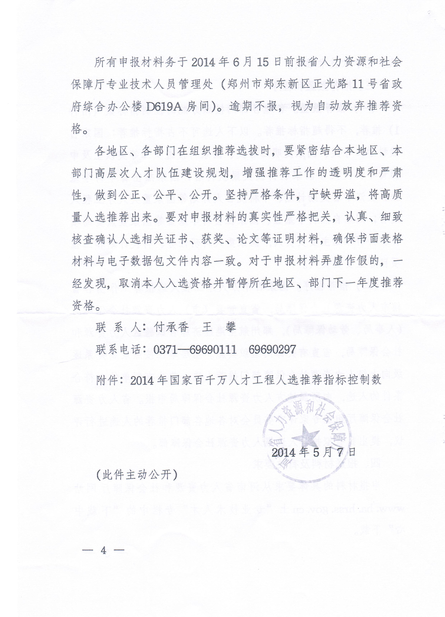 关于开展2014年国家百千万人才工程人选推荐工作的通知