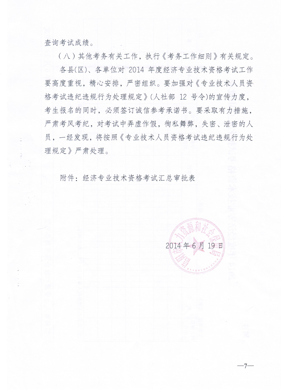 关于2014年度经济专业资格考试工作的通知