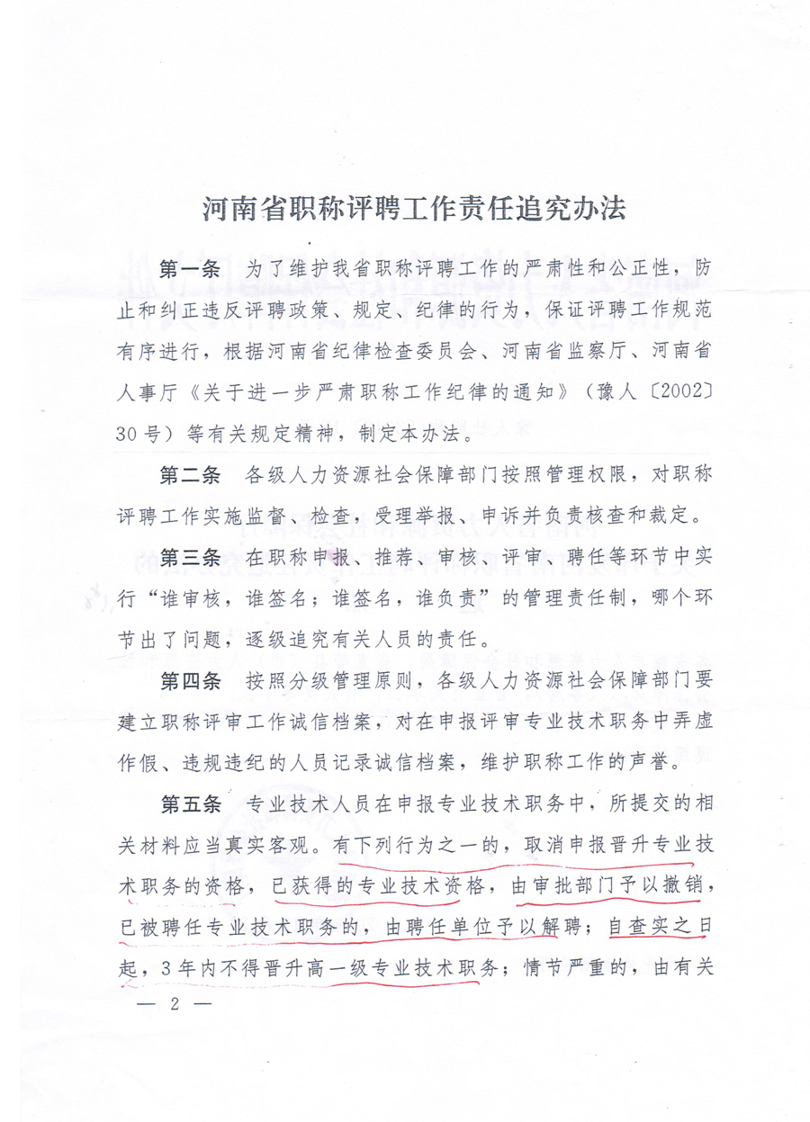 河南省职称评聘工作责任追究办法